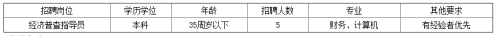 根據(jù)第五次全國經(jīng)濟普查工作需要,面向社會公開招聘普查業(yè)務人員5名,有關招聘專業(yè)、計劃人數(shù)及條件要求等如下: